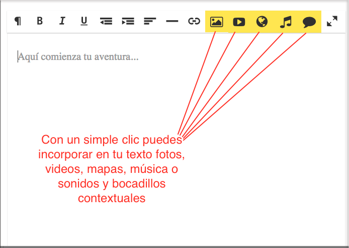 -Puedes publicar todo tipo de textos, de tipo tradicional (literarios, profesionales...) o enriquecidos con videos, mapas, músicas o sonidos y otros recursos innovadores.