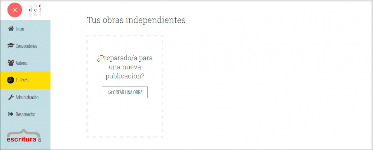 En la parte final de tu perfil, en tu estantería de obras independientes, verás un espacio bordeado por una línea de puntos en el que podrás hacer clic para comenzar a escribir:
