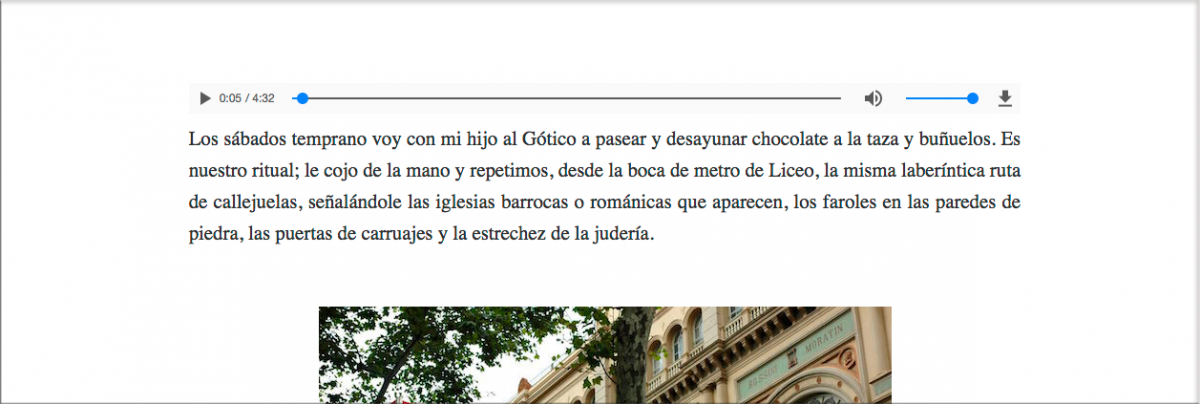 2) Insertar música o sonidos (subir ficheros de audio en mp3), que se puede reproducir automáticamente cuando se muestra la obra o bien en un momento determinado, cuando lo activa el lector.